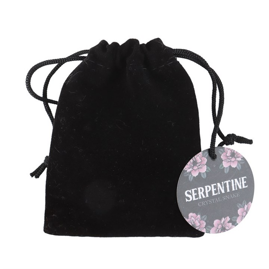 Poised, ready to strike, this stunning black obsidian crystal snake offers an aura of protection, healing and purification. Presented in a black velvet drawstring pouch, this crystal can be used as a tool for welbeing when in need of support or reassurance.