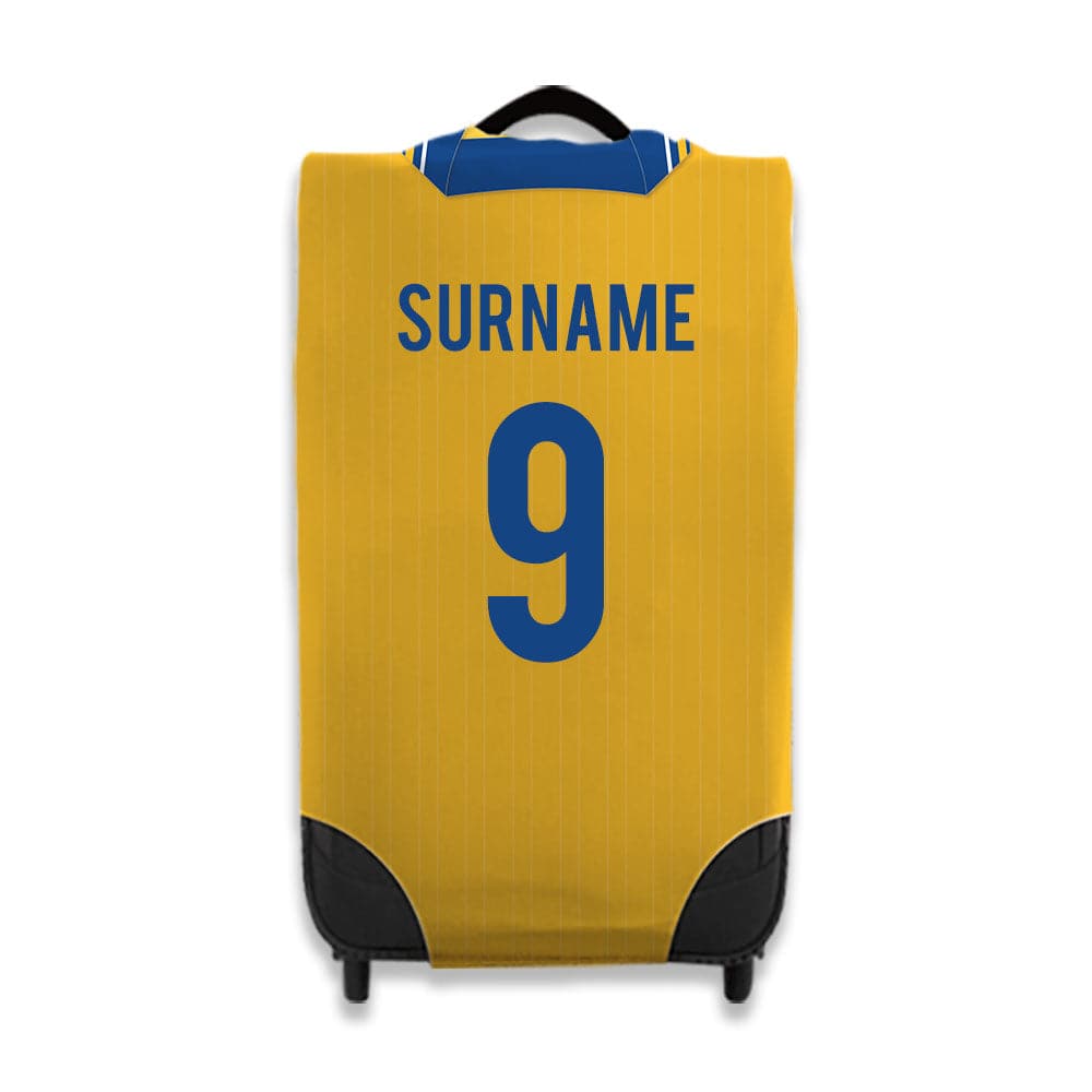 Be a part of the team with this high quality, personalised retro shirt suitcase cover.