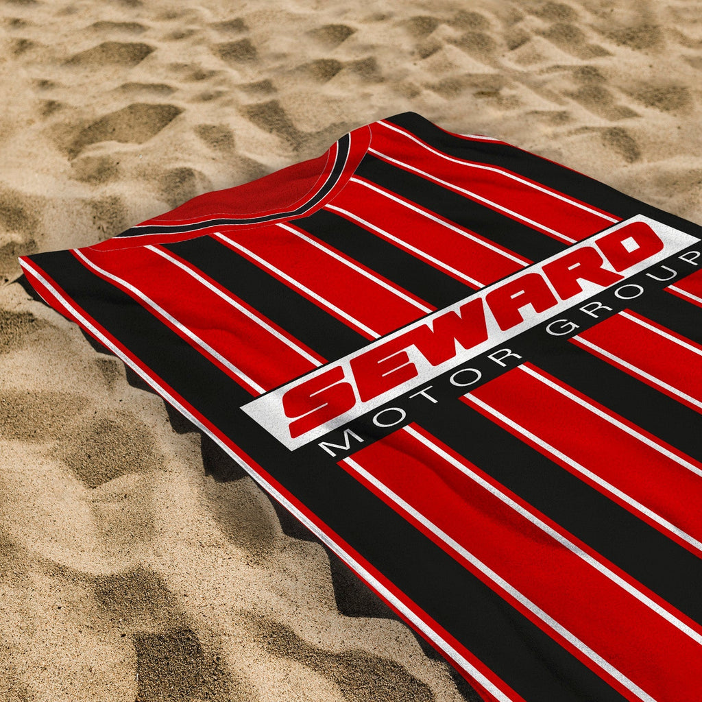Our personalised beach towels are printed one sided, edge to edge and hand sewn for a quality finish. They are designed, printed, and manufactured to order in Yorkshire, England. We use dye sublimation to ensure a vibrant, high-quality print.