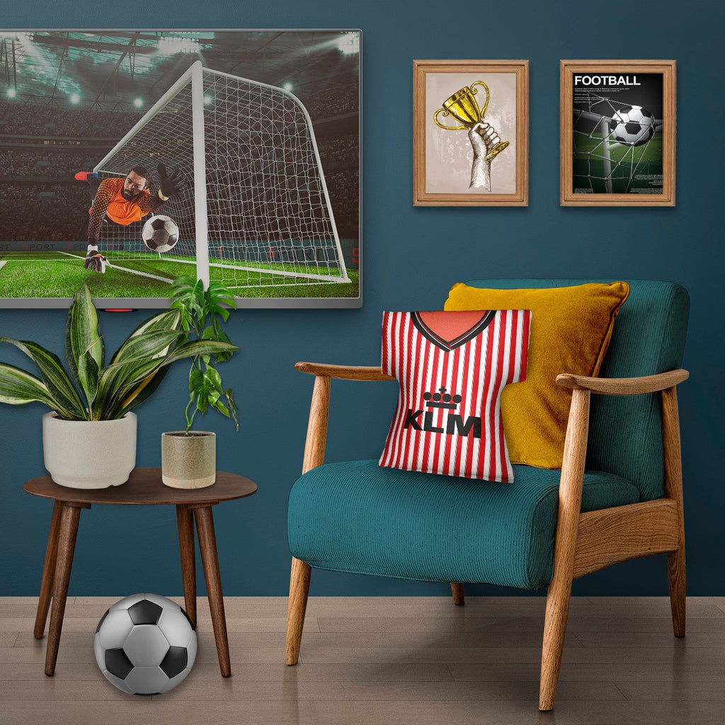 Be a part of the team with this high quality, personalised retro shirt shaped cushion with removable cover and zip.