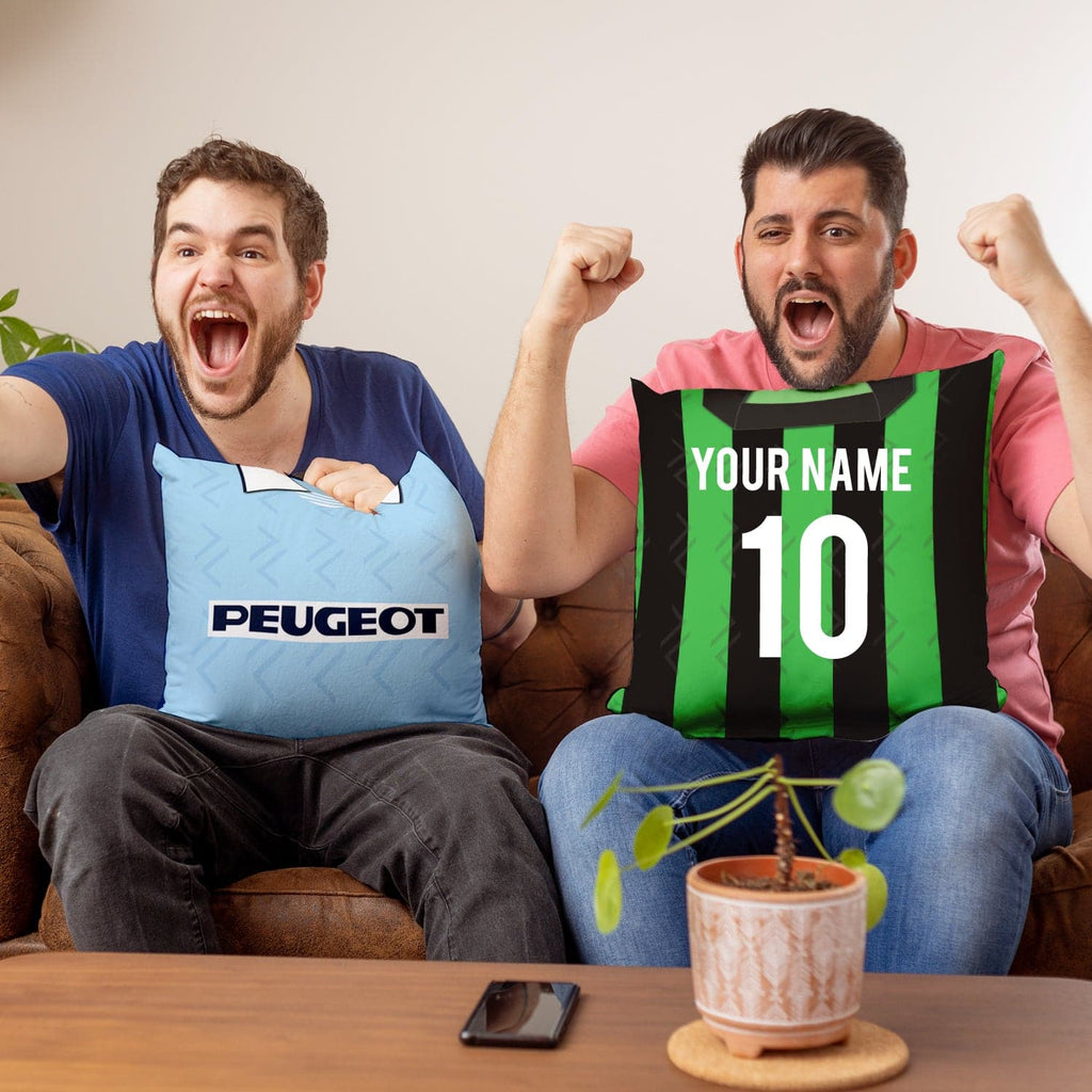 Be a part of the team with this high quality, personalised retro shirt square cushion with removable cover and zip.