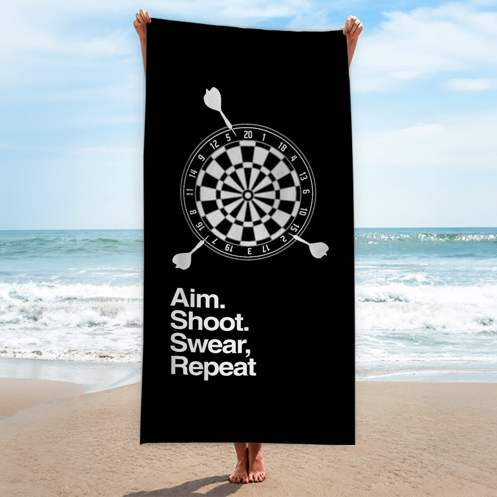 Aim. Shoot. Swear, repeat - Darts Beach Towel - 150cm x 75cm