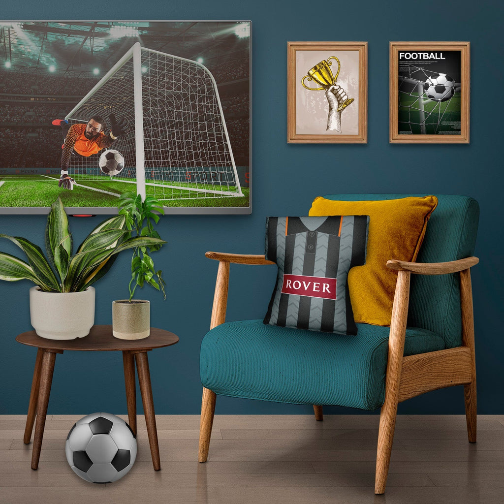 Be a part of the team with this high quality, personalised retro shirt shaped cushion with removable cover and zip.