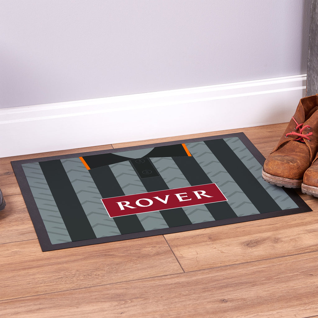 Introducing our Personalised Retro Football Door Mat, a stylish and functional addition to your home’s entrance. Measuring approximately 60cm x 40cm, this mat is designed to make a lasting impression while effectively keeping dirt and debris at bay. The low-profile design also allows for easy door clearance.