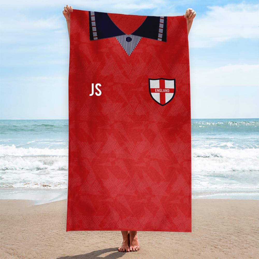 England 1990 Away Shirt - Personalised Lightweight, Microfibre Retro Beach Towel - 150cm x 75cm