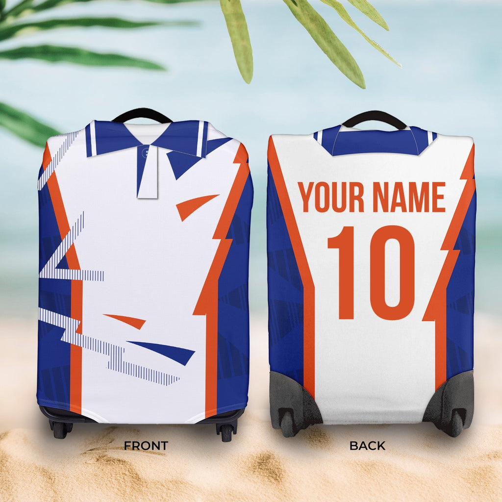 Be a part of the team with this high quality, personalised retro shirt suitcase cover.
