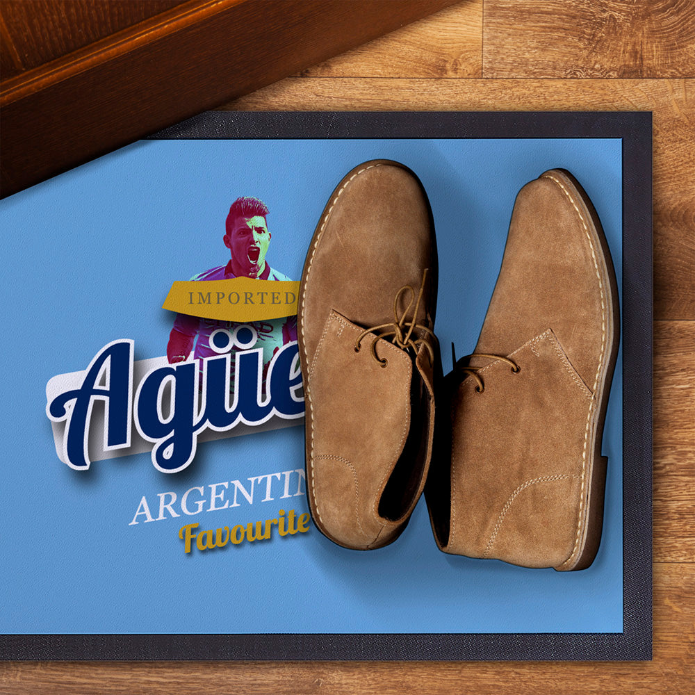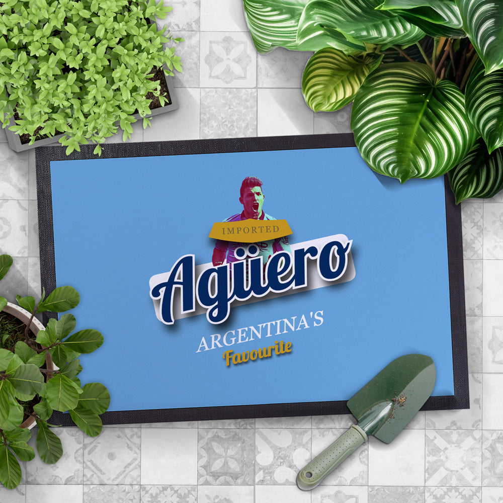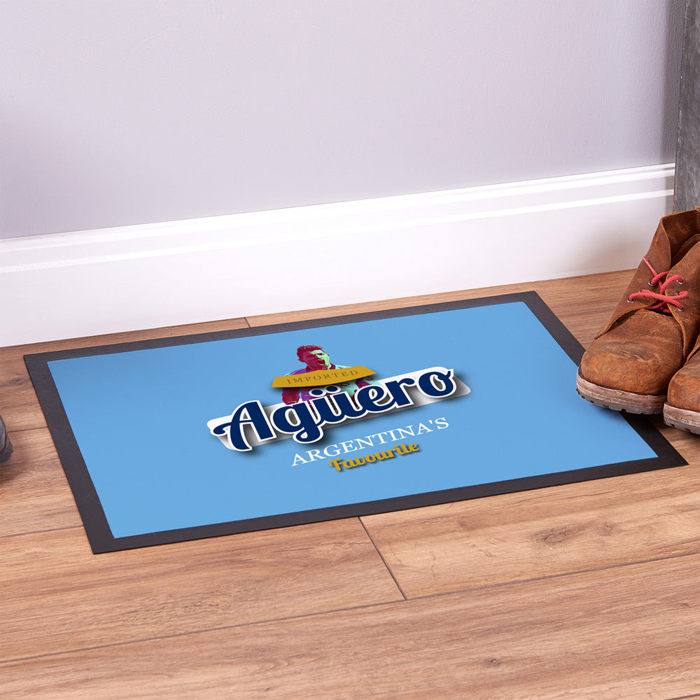 Manchester Blue Aguero - Football Legends - Door Mat -60cm X 40cm