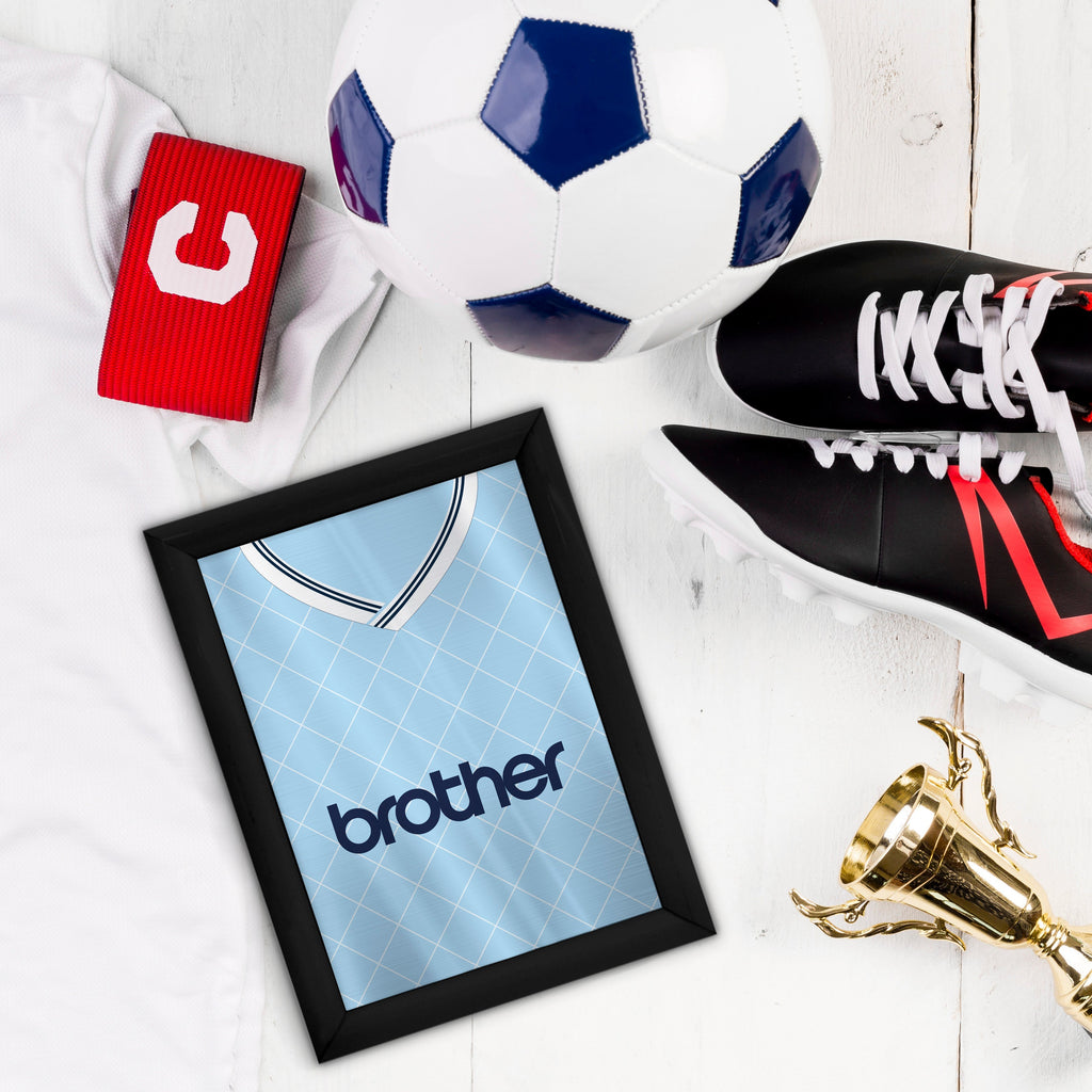 Personalised Manchester Blue Retro - 1988 Home Shirt - A4 Metal Sign Plaque - Frame Options Available