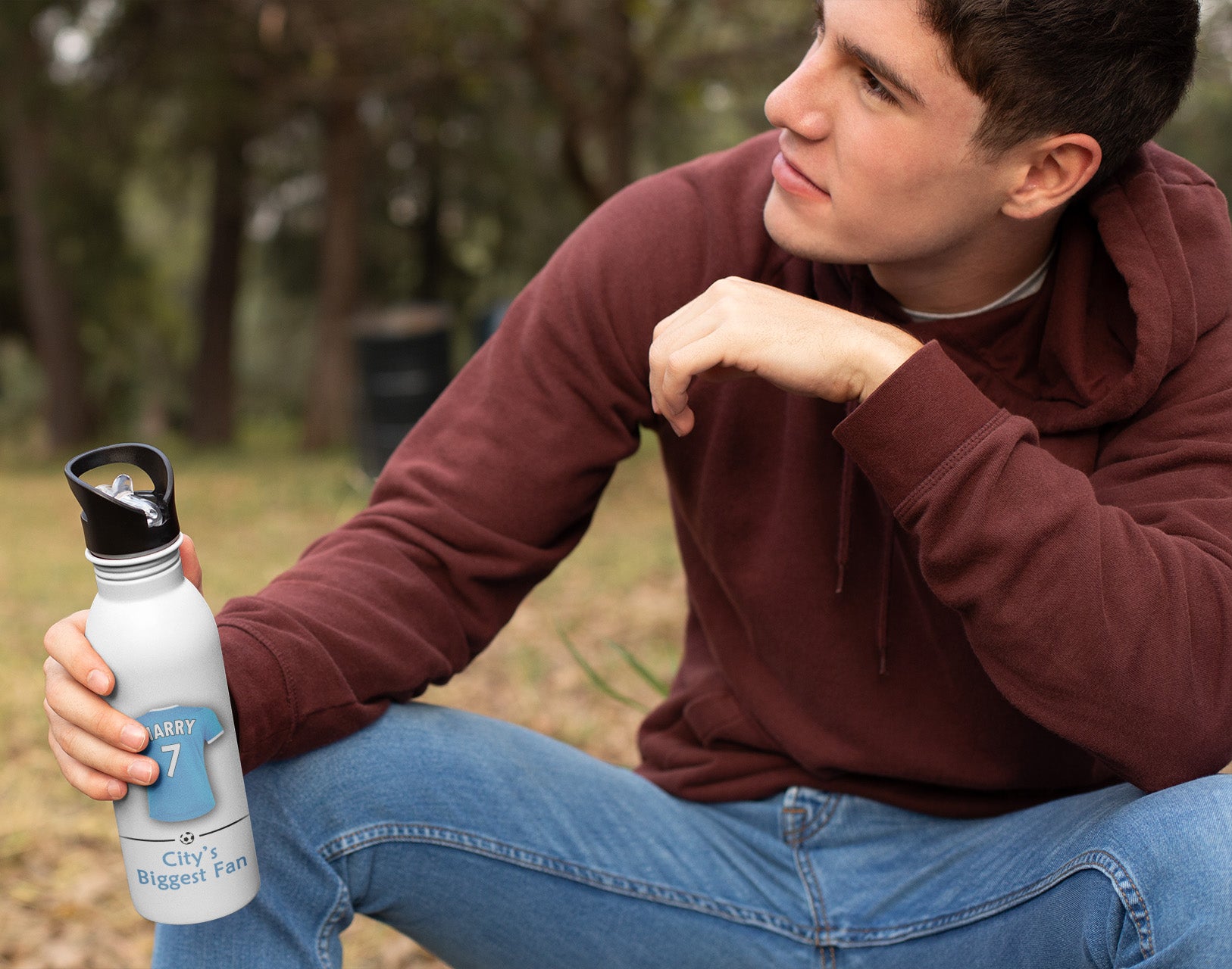 Personalised Manchester City Gym Fitness Bottle 600ml With Straw