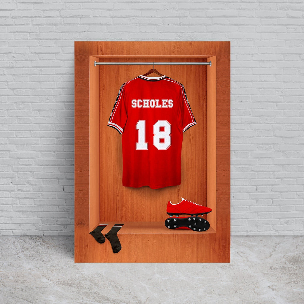 Manchester Red - '99 Retro Shirt Dressing Room - A4 Metal Sign Plaque - Frame Options Available