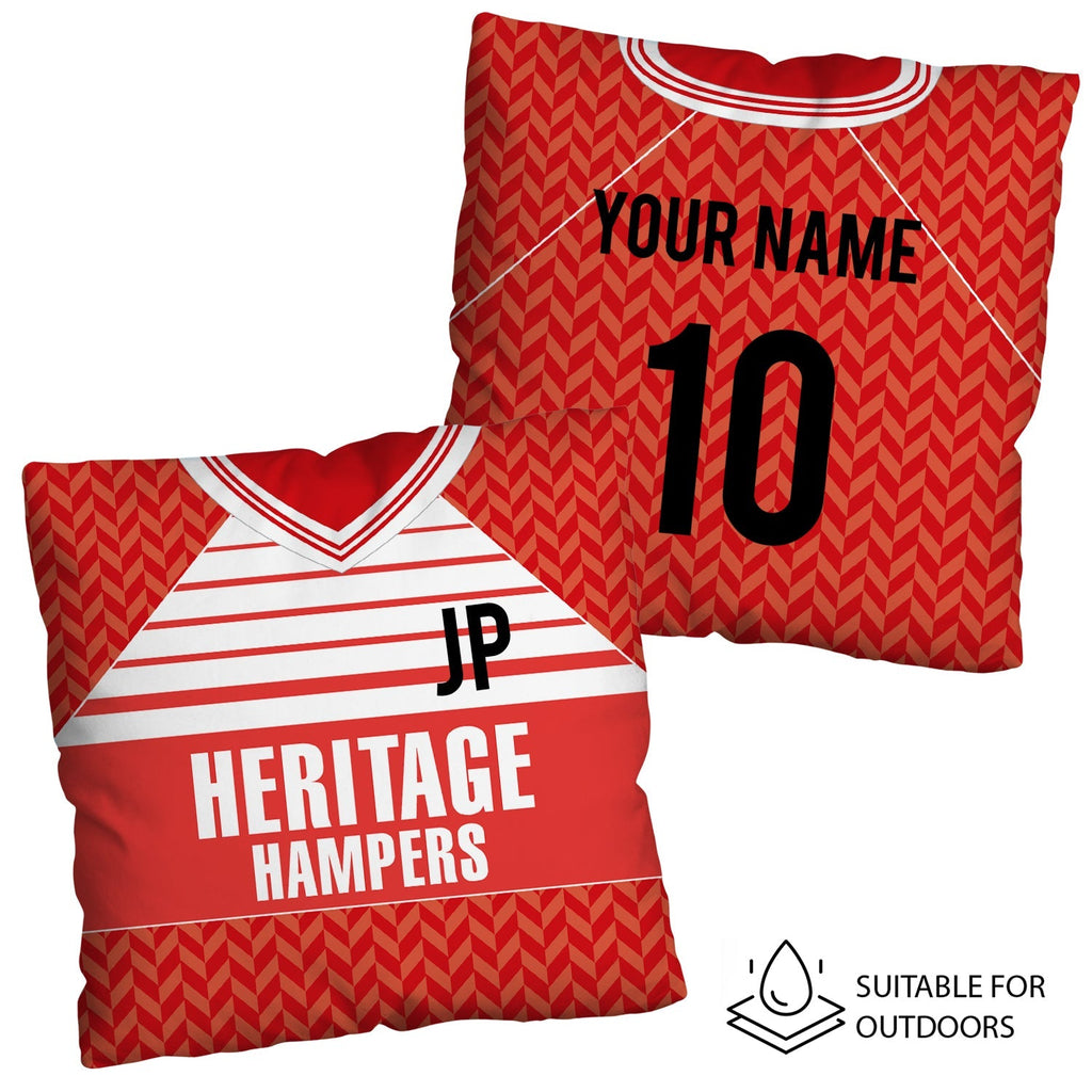 Be a part of the team with this high quality, personalised retro shirt square cushion with removable cover and zip.