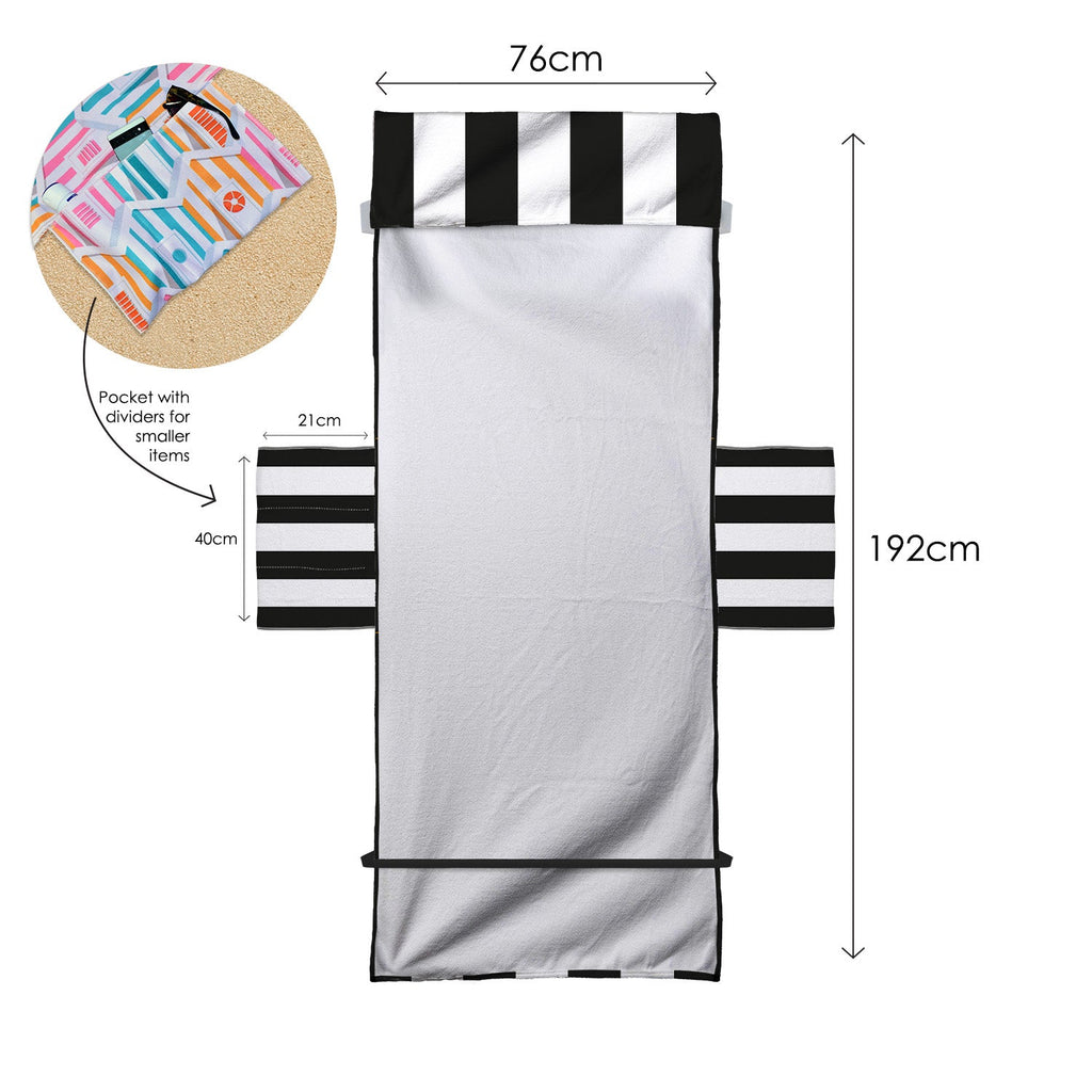 Our sun lounger towel is generously sized to fit most standard sun loungers perfectly. With dimensions of 192cm x 76cm, plus an additional 25cm in length that folds over the top of your lounger to keep it in place.