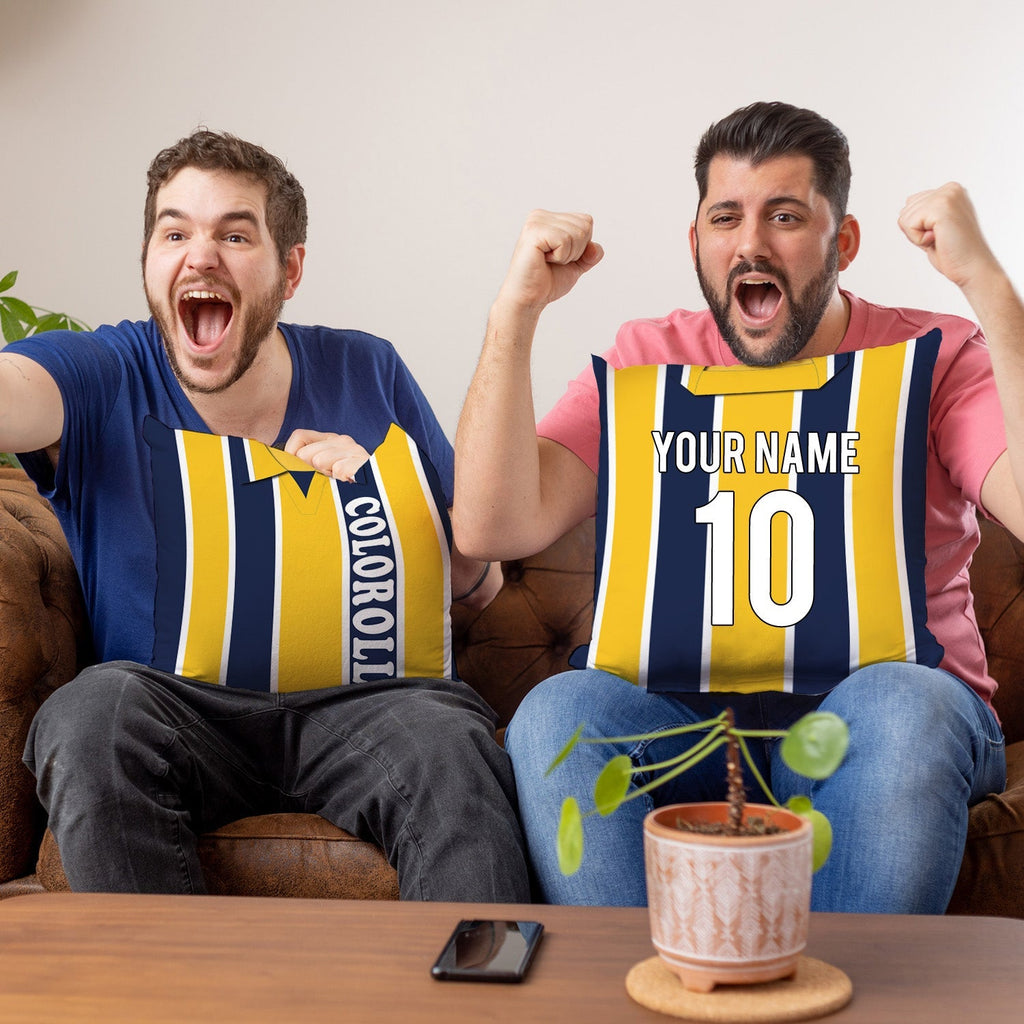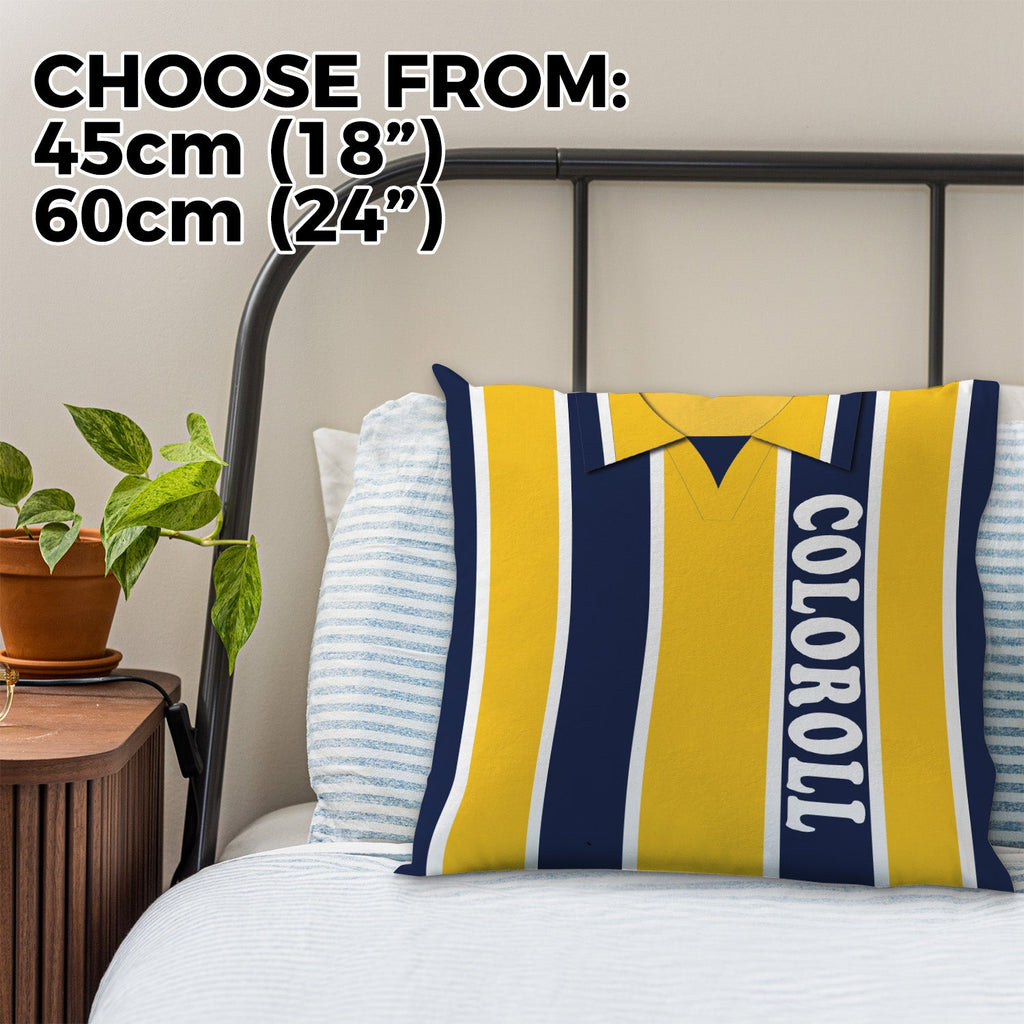 Be a part of the team with this high quality, personalised retro shirt square cushion with removable cover and zip.
