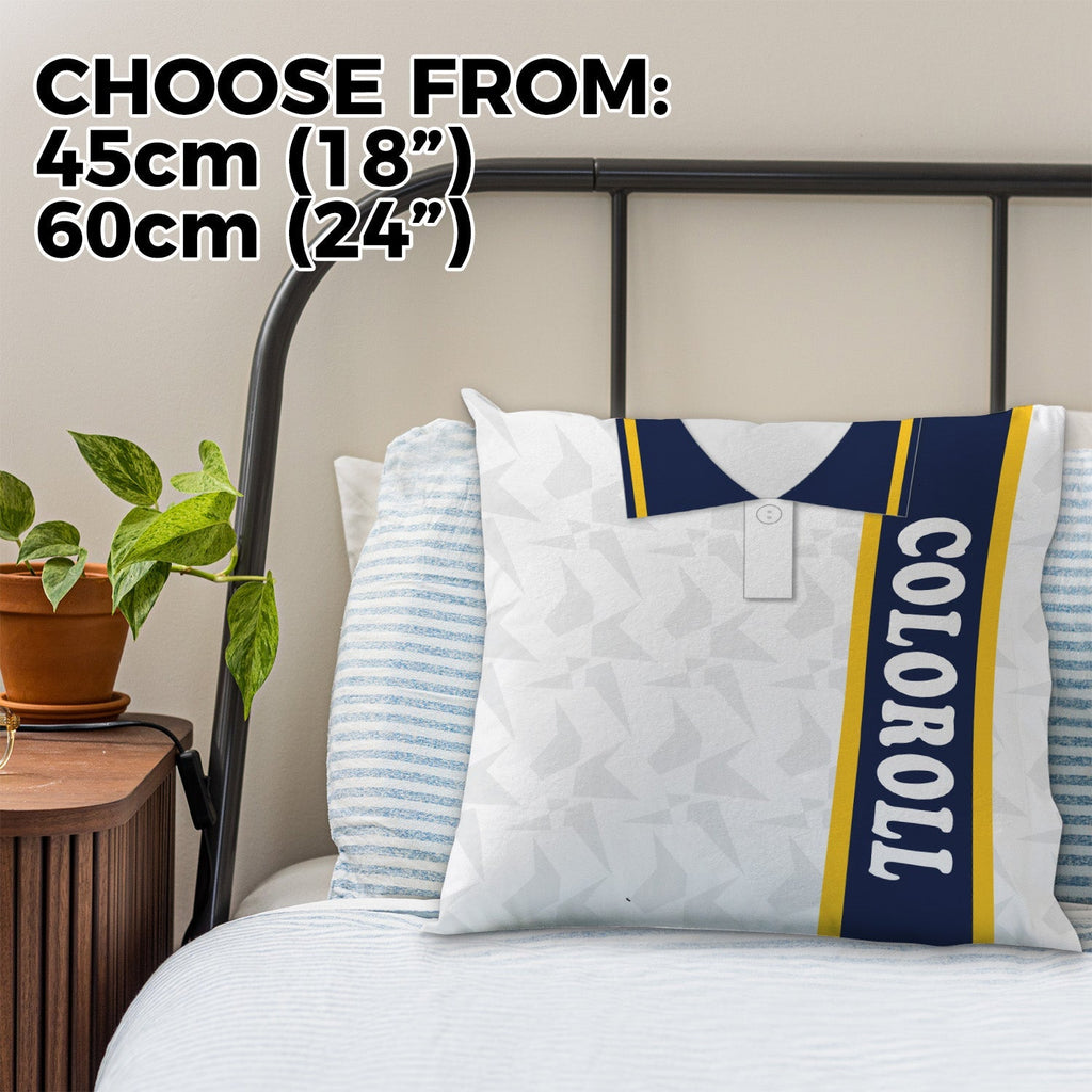 Be a part of the team with this high quality, personalised retro shirt square cushion with removable cover and zip.