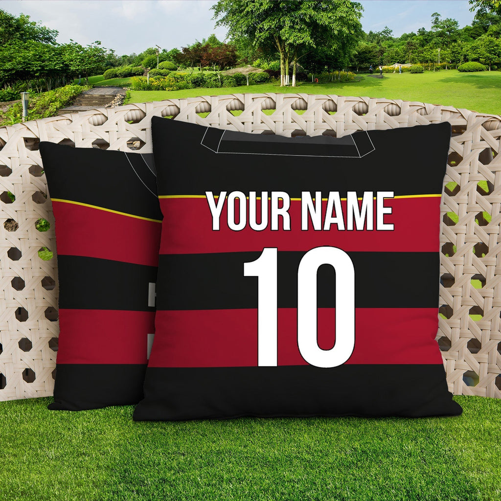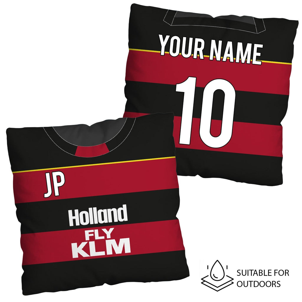 Be a part of the team with this high quality, personalised retro shirt square cushion with removable cover and zip.