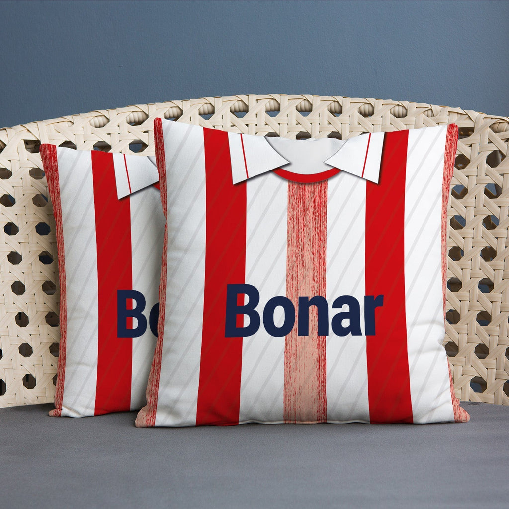 Be a part of the team with this high quality, personalised retro shirt square cushion with removable cover and zip.