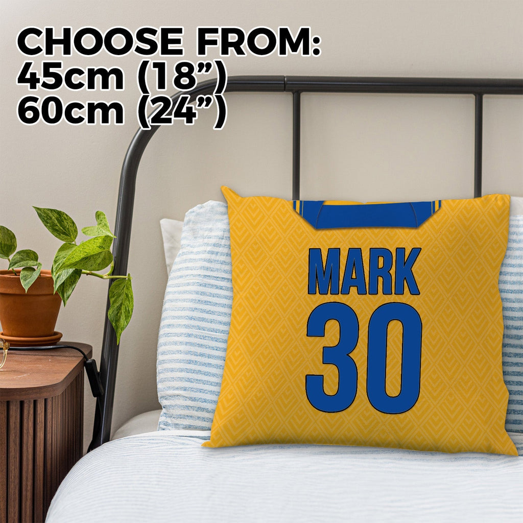 Be a part of the team with this high quality, personalised retro shirt square cushion with removable cover and zip.
