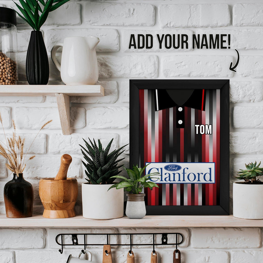 The perfect printed sign for all football mad fans! Shop your team's retro shirt design now.