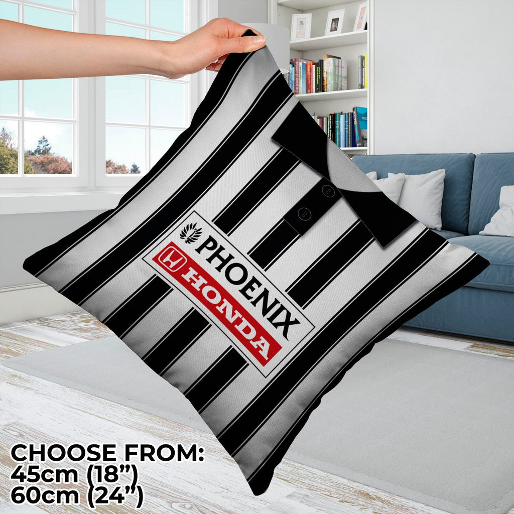 Be a part of the team with this high quality, personalised retro shirt square cushion with removable cover and zip.