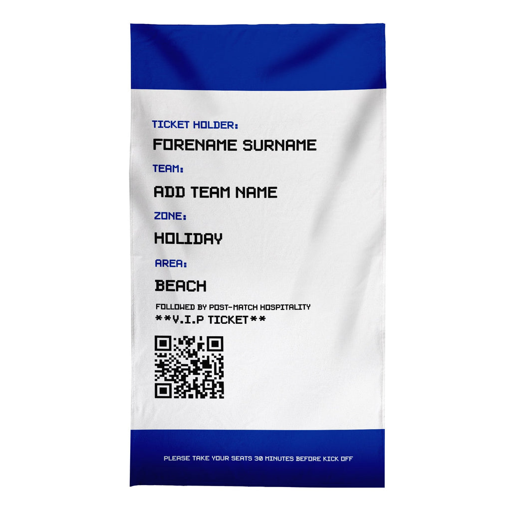 Football Ticket - Blue - Personalised Lightweight, Microfibre Retro Beach Towel - 150cm x 75cm