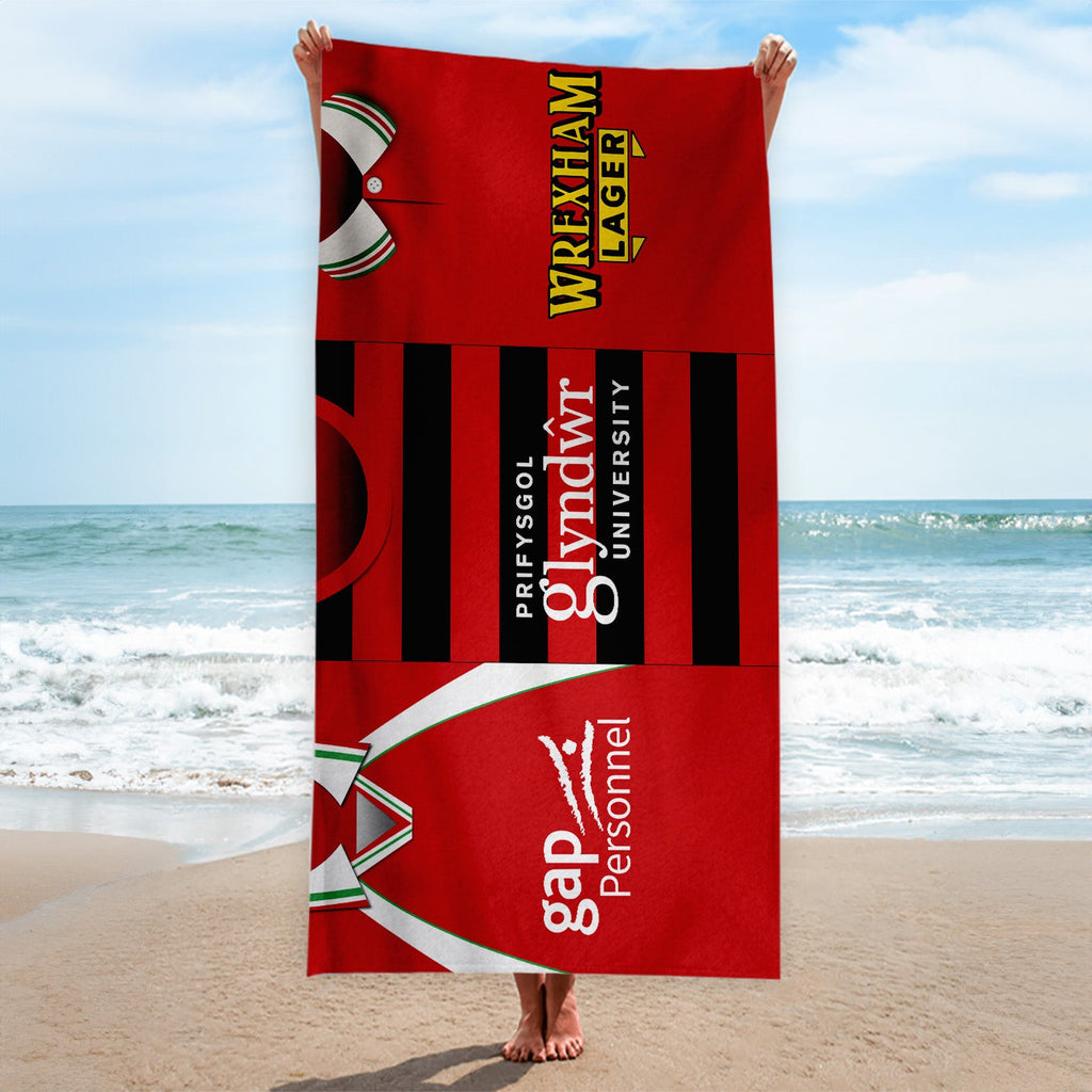 Wrexham Three Shirt Design - Personalised Lightweight, Microfibre Retro Beach Towel - 150cm x 75cm